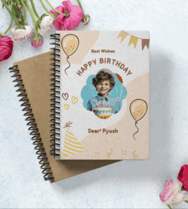 Happy Birthday Wooden Notebook Diary unruled | Customized Frames Gifts Customized Notebook Wire Bound Spiral Printed unruled Pages :160 (Size :A5)